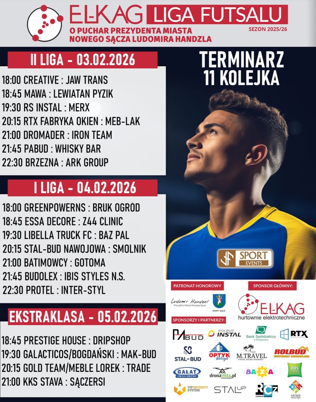 ⚽ Jak widać, u nas się dzieje. Jak nie Pabud Open Futsal, to rozpoczynająca się 11 kolejka El-Kag Liga Futsalu Poniżej przedstawiamy harmonogram gier na nadchodzący tydzień.