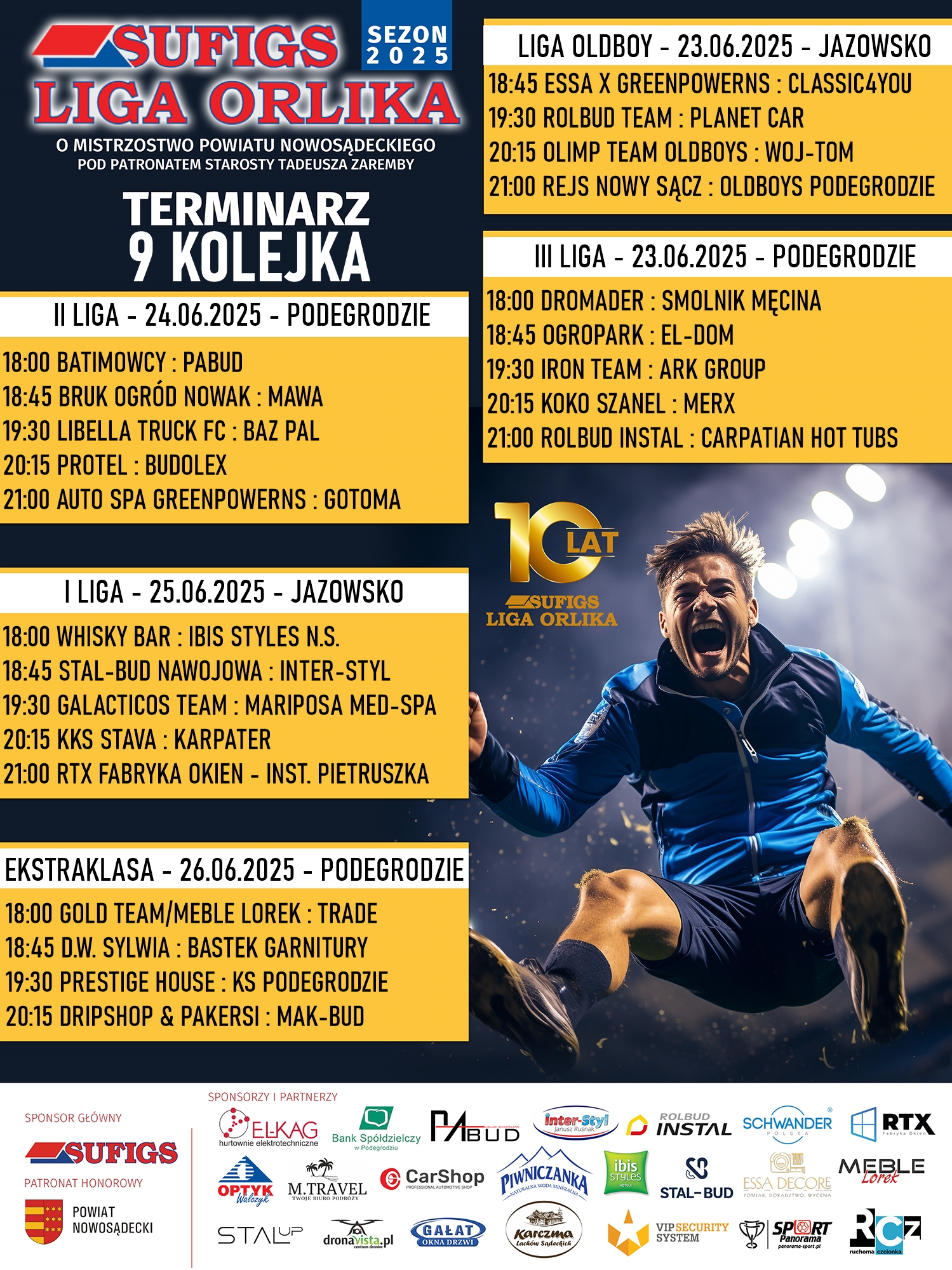 ⚽ Nadchodzi dziewiąta seria gier w Sufigs Lidze Orlika, czyli ostatnie mecze przed podziałem na grupy mistrzowskie i spadkowe. Kilka zespołów ma już pewne awanse do najlepszych piątek, lecz pozostaje jeszcze wiele drużyn, które powalczą o grupę mistrzowską. Dla przypomnienia w Lidze Oldboy, nie ma podziału na grupy mistrzowskie i spadkowe, zatem tam gra toczy się dalej.