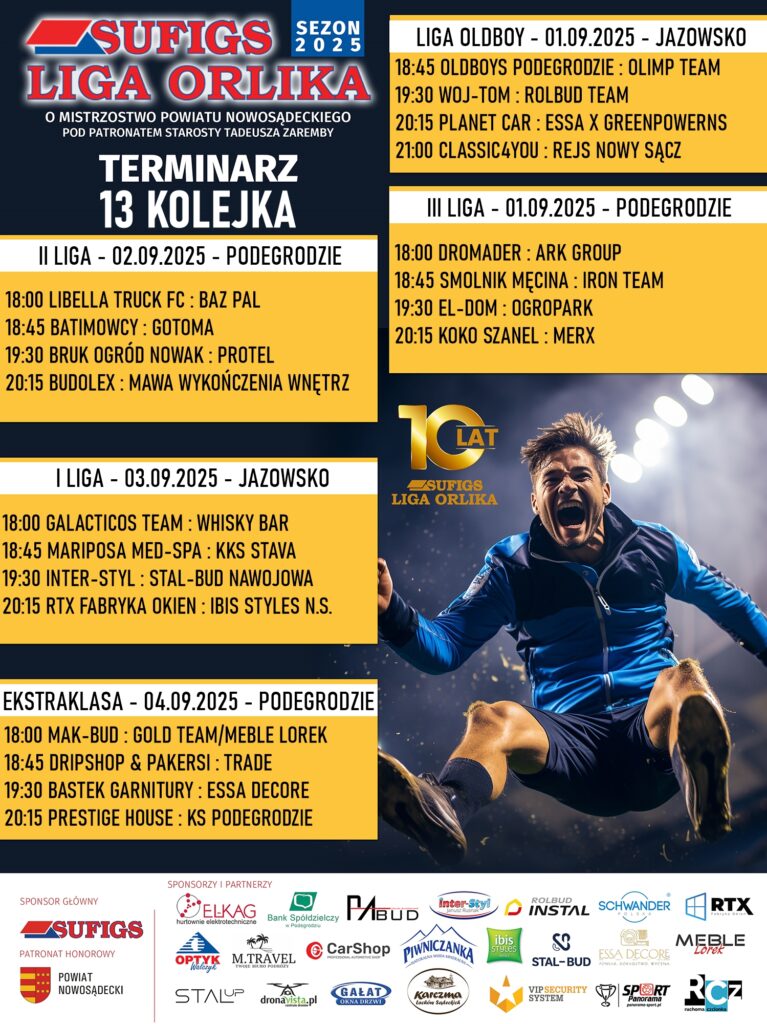 ⚽ Cytując śp. Zdzisława Ambroziaka, znanego i cenionego komentatora siatkarskiego z lat 90-tych, „zaczynamy wsteczne odliczanie”. Wspomniany dziennikarz, bardzo często używał tego rodzaju słów, kiedy wchodziło się w decydującą cześć meczu. My również zaczynamy to wsteczne odliczanie na naszej Sufigs Lidze Orlika, wchodząc w decydującą końcówkę sezonu.