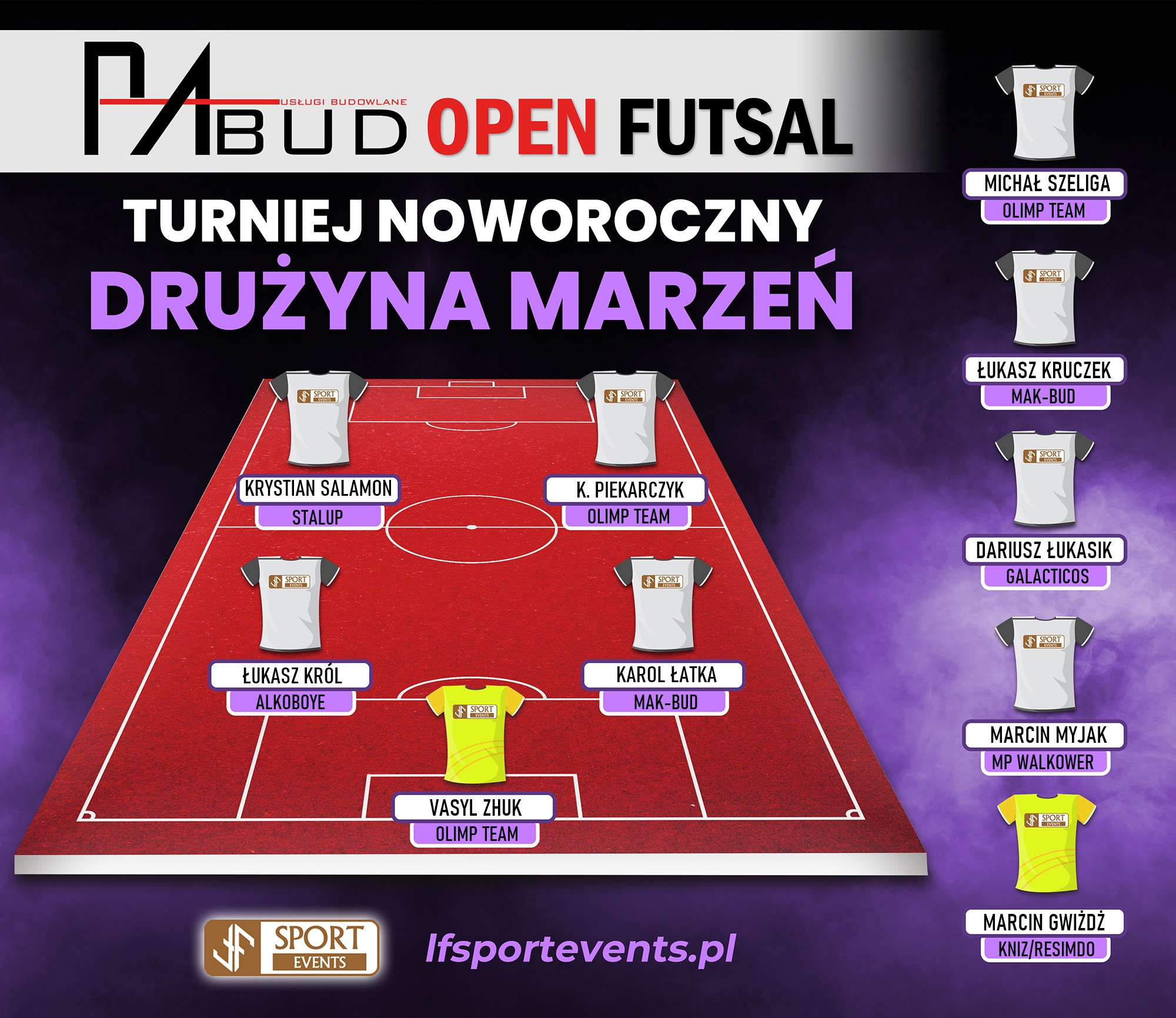 DRUŻYNA MARZEŃ TURNIEJU NOWOROCZNEGO PABUD OPEN FUTSAL 14 stycznia 2025 Przedstawiamy najlepszych zawodników Turnieju Noworocznego w Korzennej. Gratulujemy nominowanym