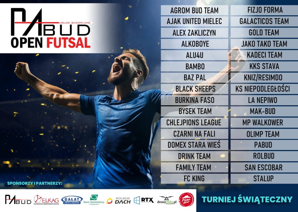 Aż 32 drużyny wystąpią w Turnieju Świątecznym w ramach Pabud Open Futsal, co jest nowym, fantastycznym rekordem od początku organizowania wspomnianej imprezy. Sytuacja ta spowodowała, że po raz pierwszy w naszej historii, turniej rozgrywany będzie w dwa dni (sobota i niedziela 21/22 grudnia 2024 na hali MOSiR w Nowym Sączu). Duma nas rozpiera, że lista drużyn, w zasadzie zamknięta została na dwa tygodnie przed rozgrywkami. Dziękujemy że tak licznie jesteście z nami.